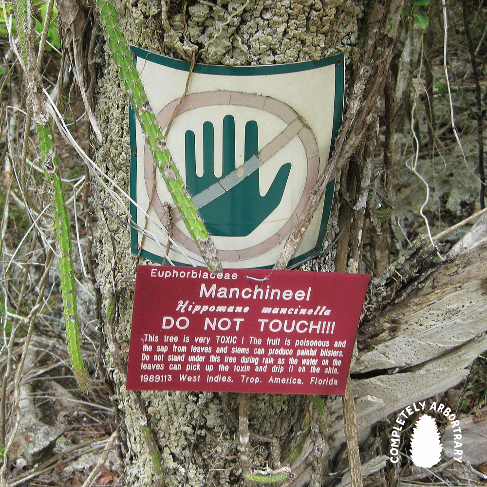 DO NOT TOUCH this week’s tree (Hippomane mancinella), it makes horses go crazy!