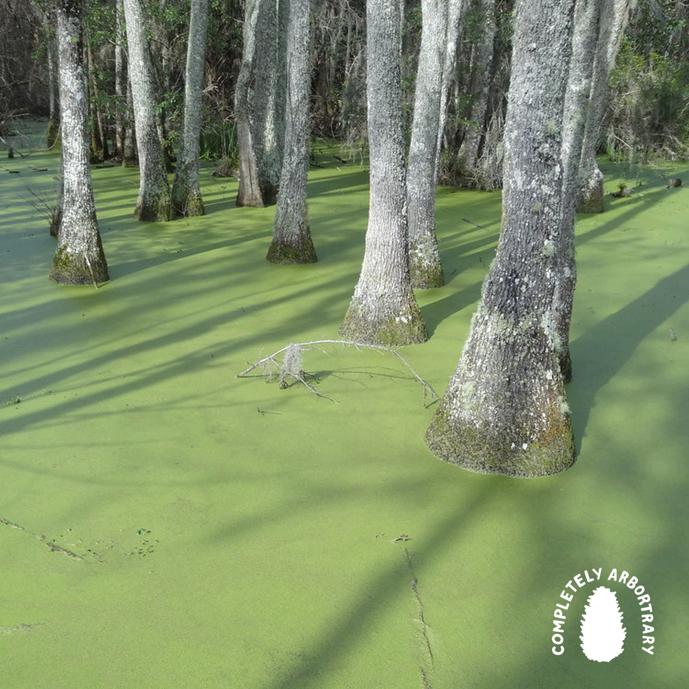 Out of the black tea lagoon comes a swamp monster! It’s the swamp tupelo (Nyssa biflora)—swollen butt and all—who has learned how to breathe… underwater.